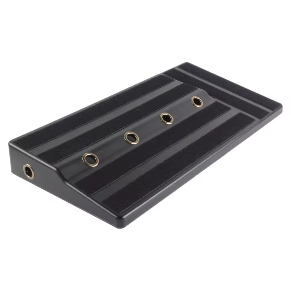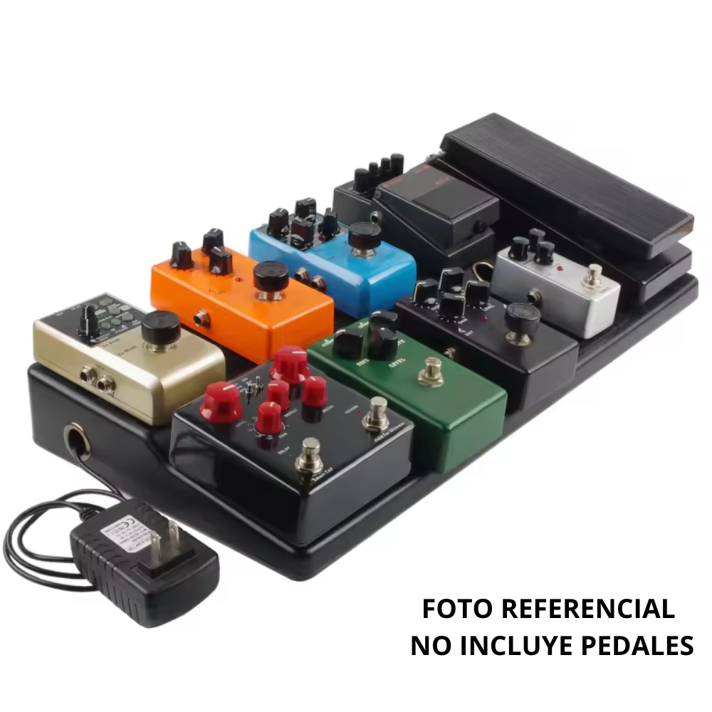 Pedalera para efectos de guitarra MOGE RPB-1BK, ligera y resistente, fabricada en PE de alta dureza. Con diseño para ocultar la fuente de poder, gestión de cables con orificios internos y alfombrillas antideslizantes para mayor estabilidad. Incluye sujetador adhesivo y destornillador para un montaje rápido y ordenado.