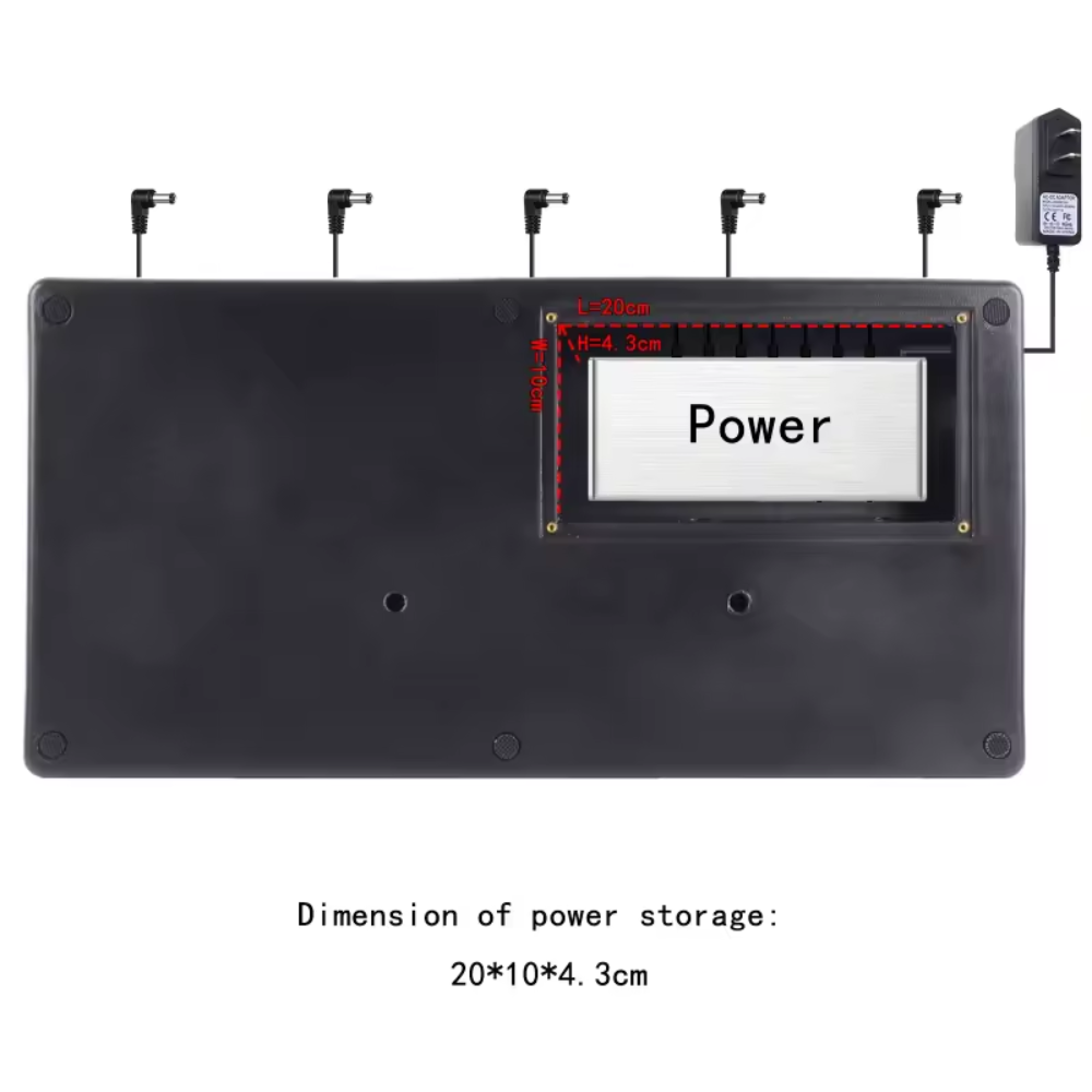 La pedalera MOGE RPB-1BK está diseñada para ofrecer organización, resistencia y comodidad a guitarristas que buscan optimizar su set de efectos. Fabricada con material PE de alta dureza, es ligera, resistente y soporta la presión del uso constante, ideal tanto para ensayos como para presentaciones en vivo.