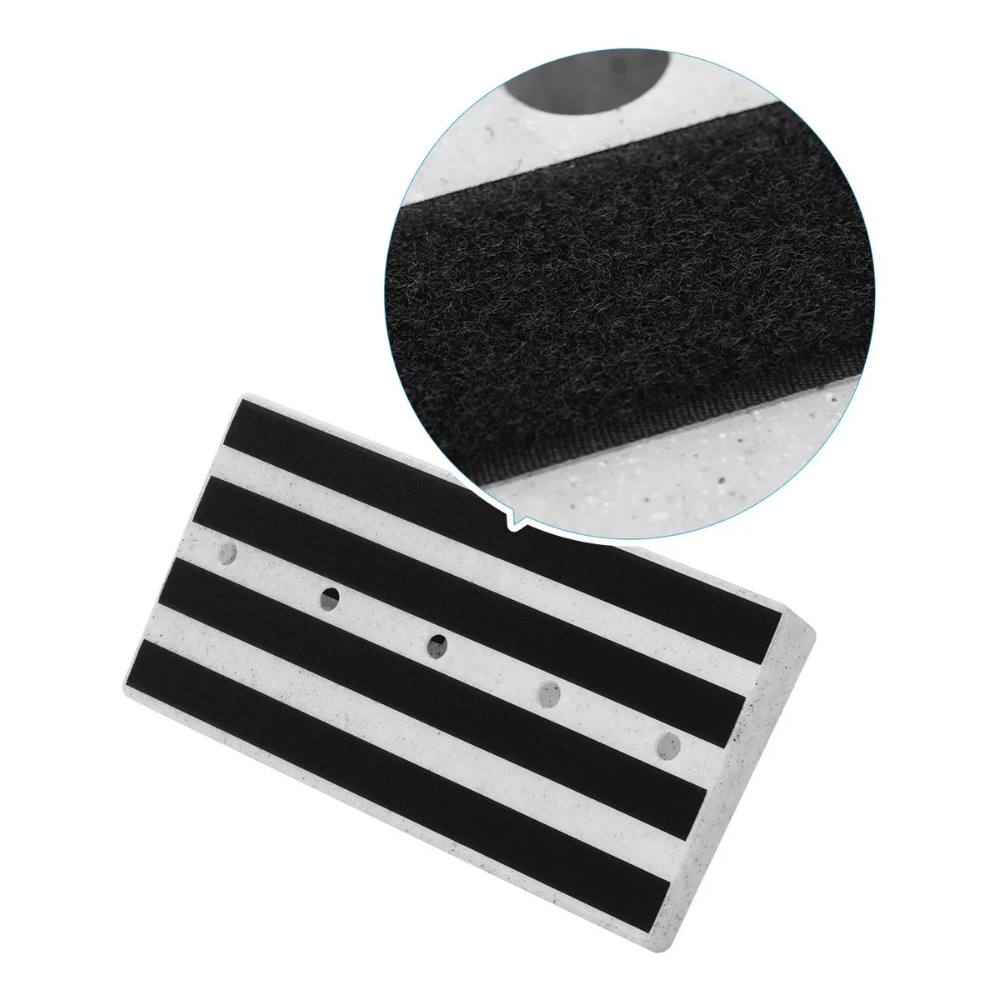 Incluye cinta de enlace en la superficie, que mantiene los pedales firmemente sujetos, evitando movimientos durante el uso. Además, cuenta con agujeros en la parte posterior, pensados para una gestión de cables limpia y ordenada, evitando enredos y logrando un aspecto profesional.
